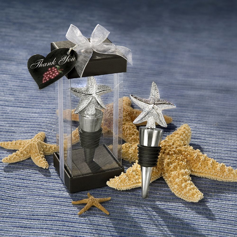 An exquisite symbol of renewal, regeneration and symmetry, the starfish is always a crowd pleaser. And these bottle stopper favors certainly give the starfish a starring role! Each 4.5″ x 0.75″ x 2.5″ bottle stopper has a sturdy chrome base with a dramatic 3D shiny pebbled resin starfish topper. From Fashioncraft®’s exclusive Vineyard Collection, each chrome wine stopper is beautifully packaged in our signature clear box with a black bottom, elegantly finished with a white organza bow and designer heart shaped thank you tag attached.