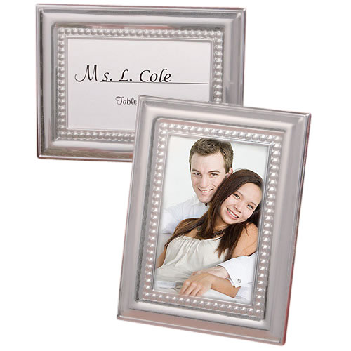 With elegance and versatility combined, these matte silver metal place card/photo frames are picture perfect favors